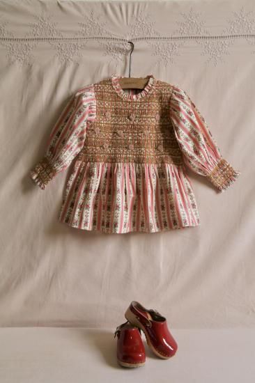 Bonjour Handsmock blouse with crochet collar tapestry pink stripe