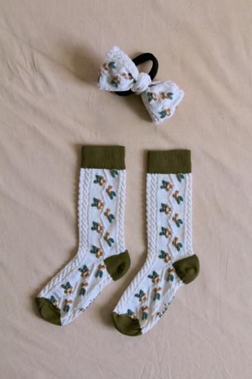 Bonjour "Farandole" green/ecru socks & matching hair knot
