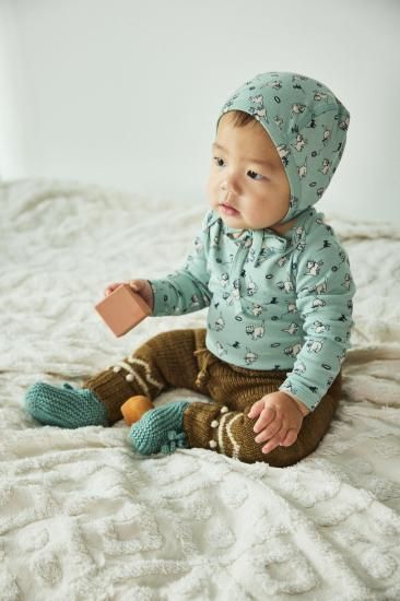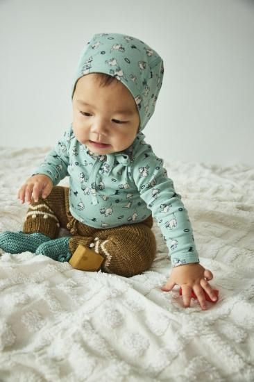 Misha and Puff Baby Pima Bonnet - Sage Cat & Mouse