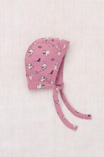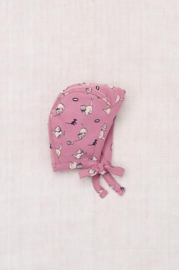 Misha and Puff Baby Pima Bonnet - Antique Rose Cat & Mouse